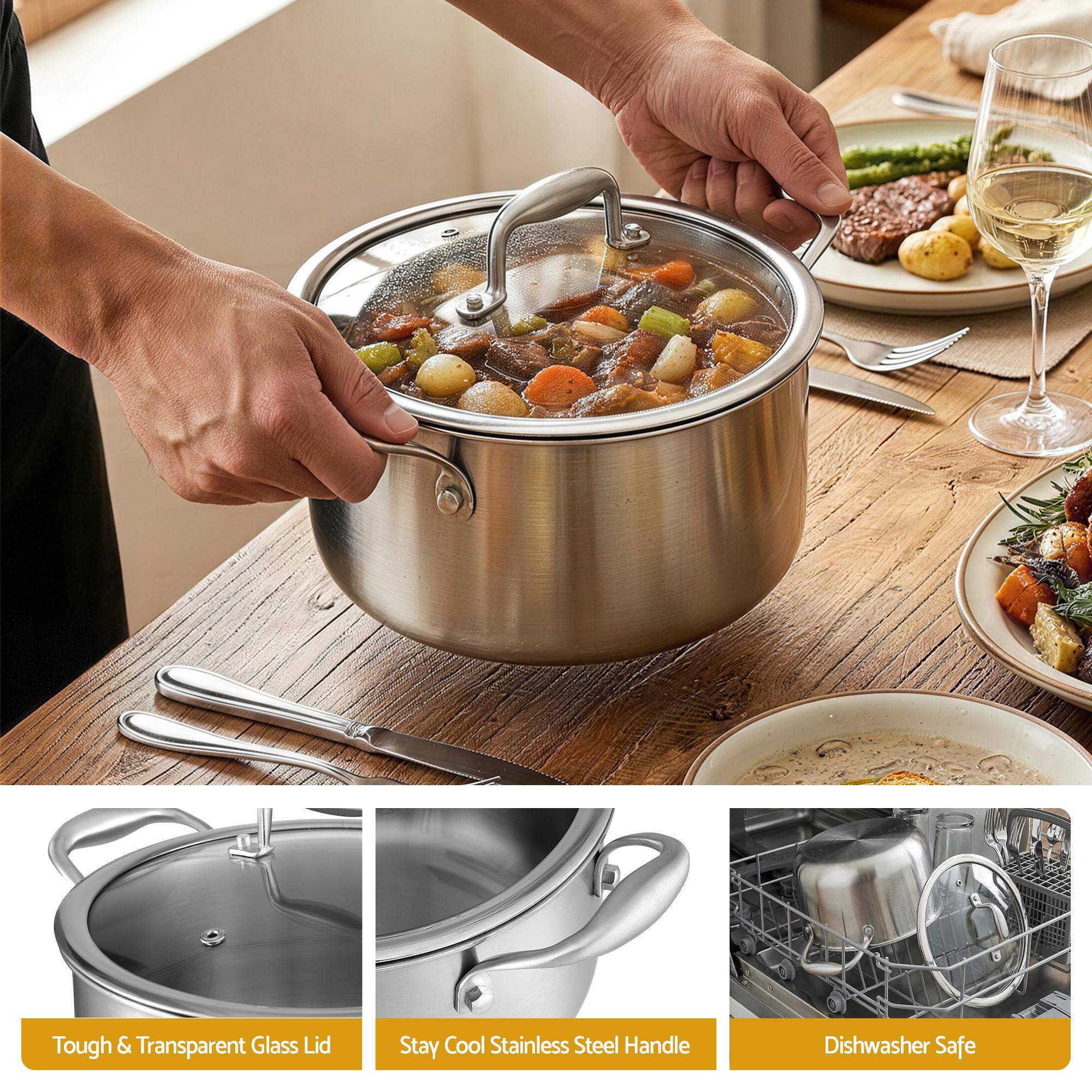 Professional 4.5L Stainless Steel Dutch Oven – The Ultimate Kitchen Multi-Tasker