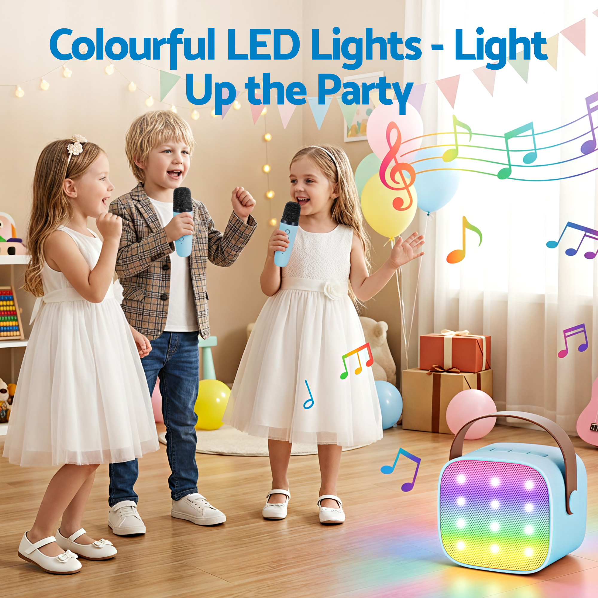 Turn any space into a stage with our Mini Portable Karaoke Machine. Designed for music lovers of all ages, this compact powerhouse combines high-fidelity sound with dazzling light effects to create an unforgettable party atmosphere. Whether you’re hosting a backyard bash, a family birthday, or just a fun night in, our dual-mic system ensures everyone can join the performance. Simple to use, easy to carry, and packed with professional audio features, it’s the excellent way to bring joy and music to your home.