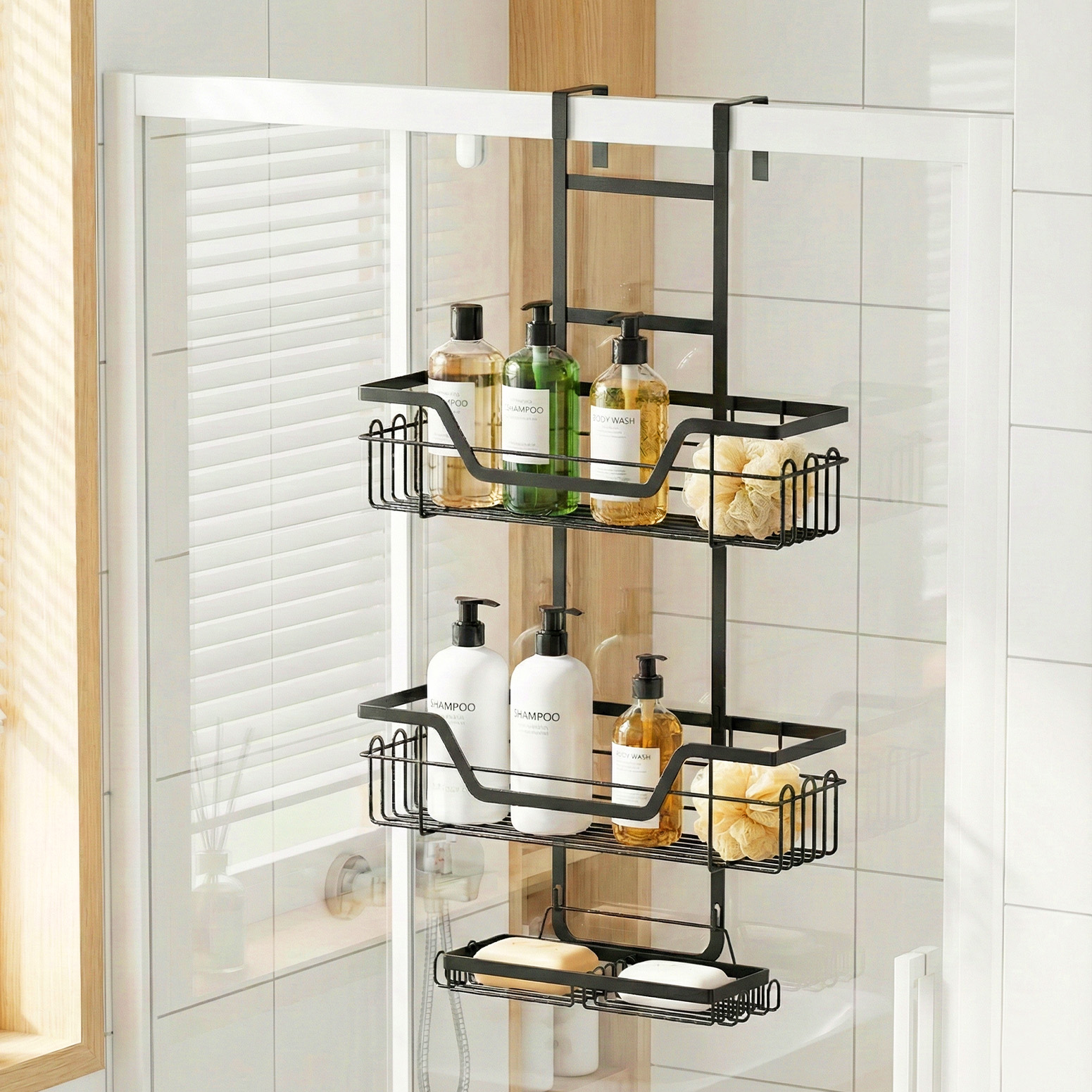 Tidy up your bathroom with this clever 3-tier wall shelf! It features a simple clip-on design​ for glass and a strong adhesive option for tiles, meaning no drilling or tools​ are needed. Perfect for renters, it gives you versatile storage without any damage. The sleek design holds all your shower essentials neatly. Enjoy a clutter-free space in minutes!