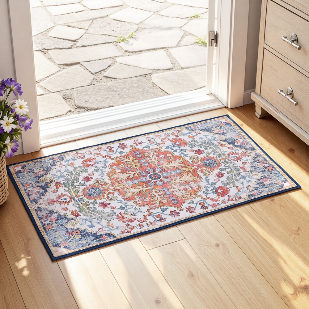 Add a splash of Bohemian charm to any space with the Artiss Vintage Medallion Rug. Featuring a velvety-soft flannel pile and a beautiful distressed finish, this piece feels as good as it looks. Perfect as a 50x80cm doormat, bath mat, or kitchen accent, its anti-slip backing provides stability.