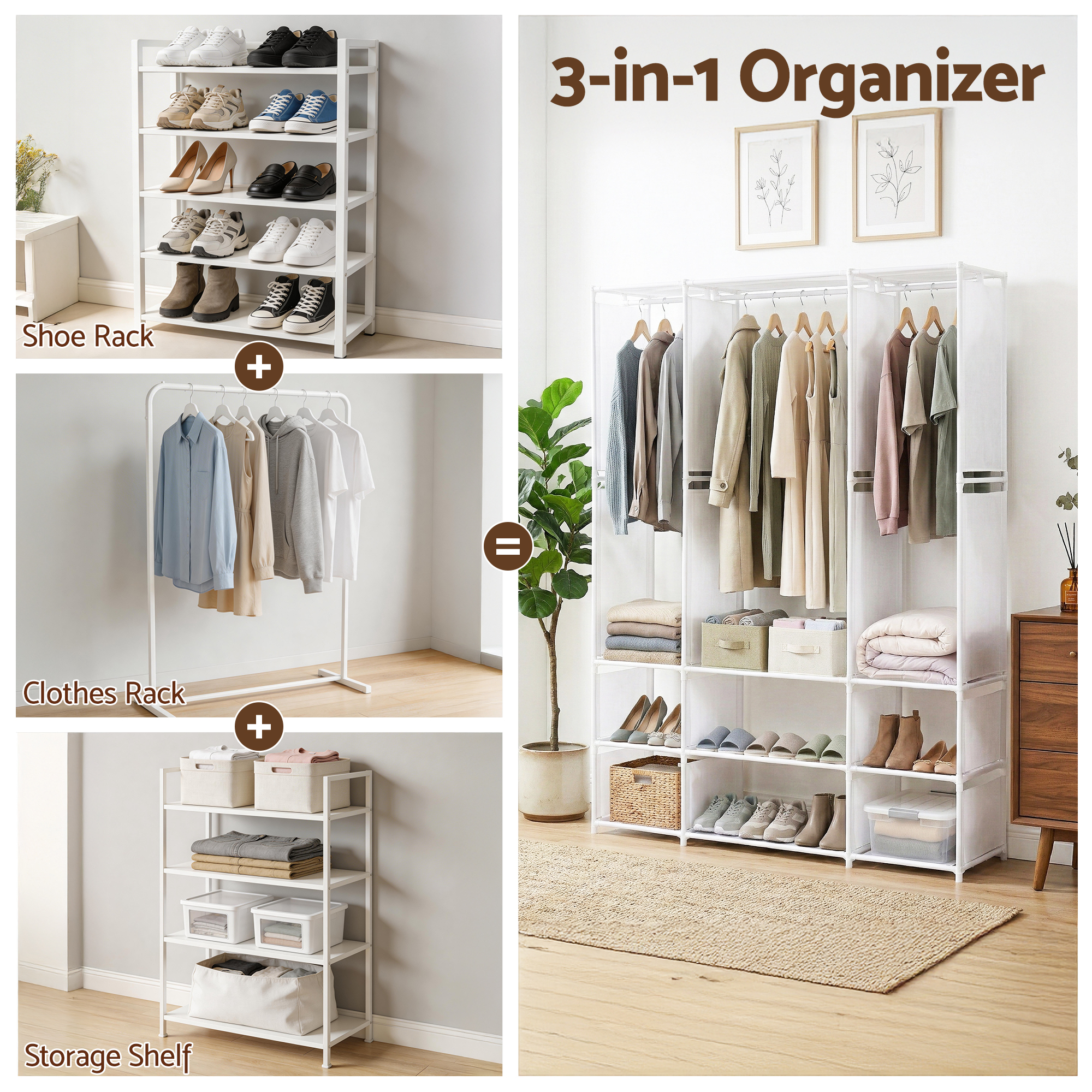 Built with a sturdy, powder-coated metal tube frame and robust plastic connectors, it provides reliable daily stability. The breathable, premium non-woven fabric cover protects your garments from dust while keeping your space looking tidy.