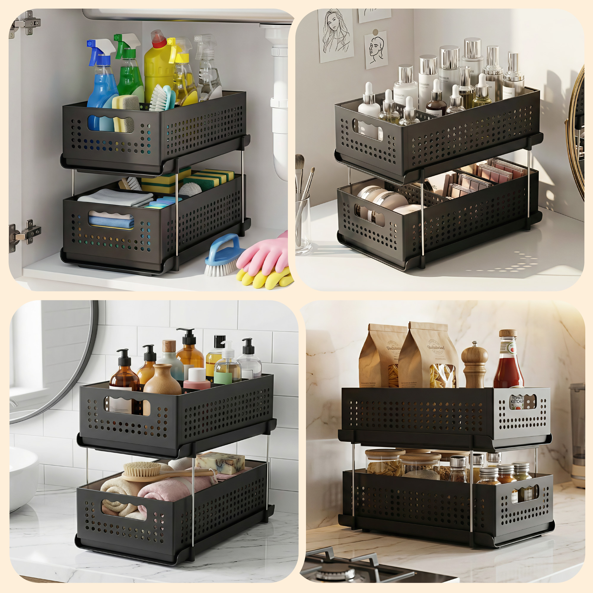 Maximise awkward narrow spaces with the Artiss Modular Pull-Out Organiser. This clever under sink storage solution features two completely removable baskets that function as portable trays—lift them out to carry items or clean with ease. Its slim 21cm width slips perfectly into tight gaps beside toilets or in shallow cabinets. Customise your layout with adjustable dividers. Assembly is quick and straightforward. With a simple design, this cabinet organizer blends into any kitchen, bathroom, or laundry, providing flexible and accessible storage exactly where you need it.