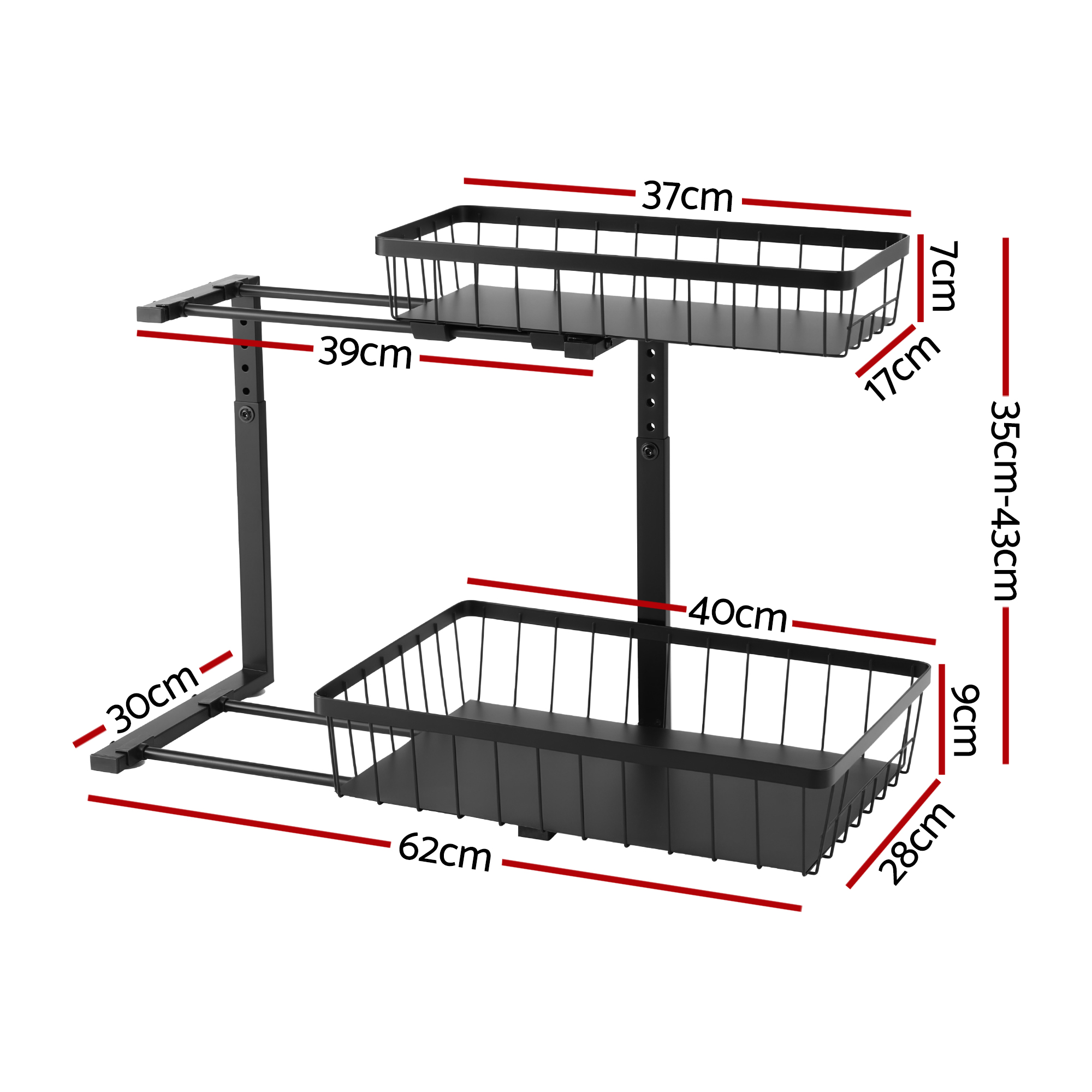Maximise every inch of storage with the Artiss Under Sink Organizer. Its unique L-shape design neatly tucks behind pipes, transforming wasted space into a functional area. The unit features 2 handy slide-out drawers that bring items in the back within easy reach, ending the need to dig through clutter. With 5 adjustable height settings, it custom-fits under most kitchen or bathroom sink cabinets. This storage solution is perfect for organising cleaning products, soaps, and spare toiletries, turning a chaotic under-sink area into a model of order and efficiency.