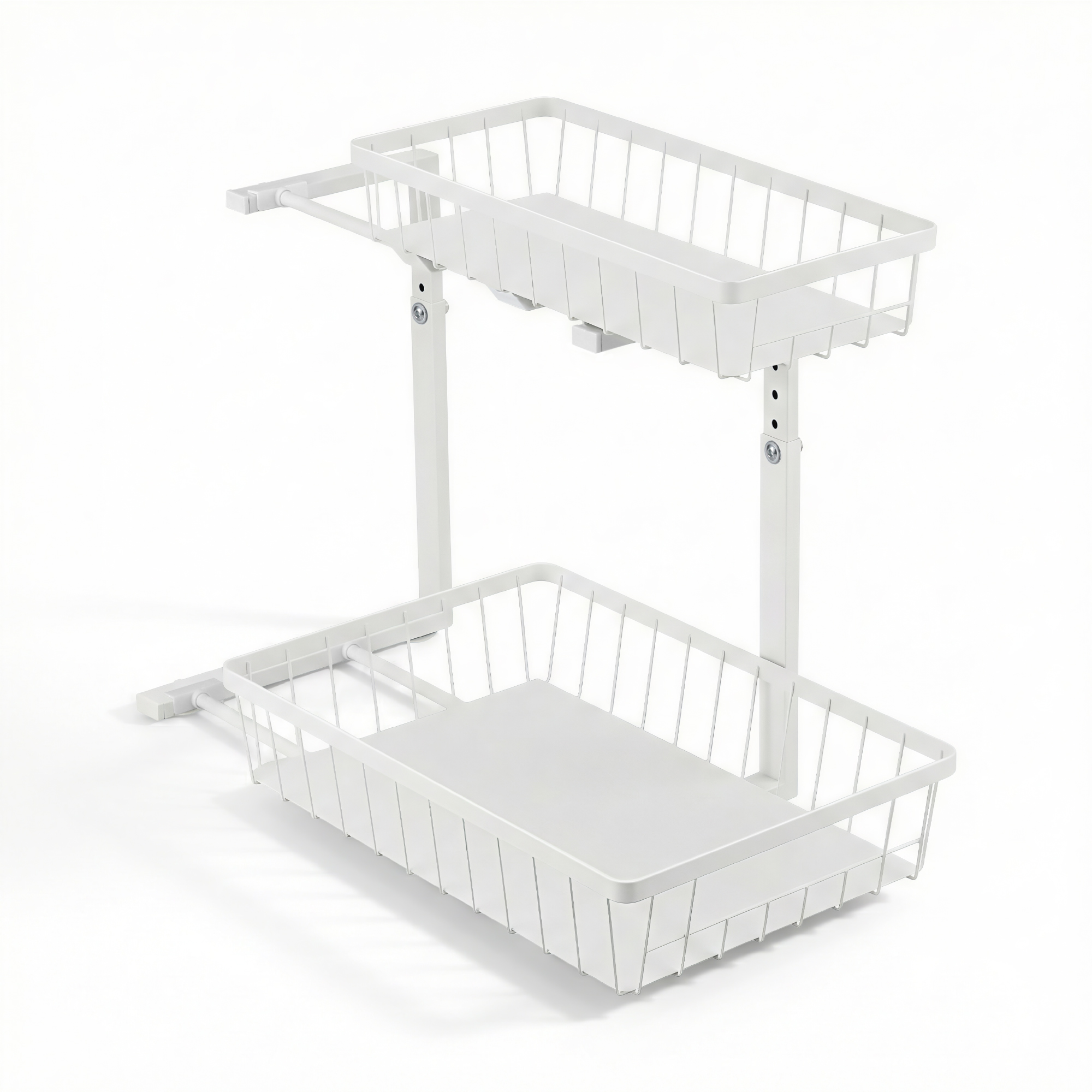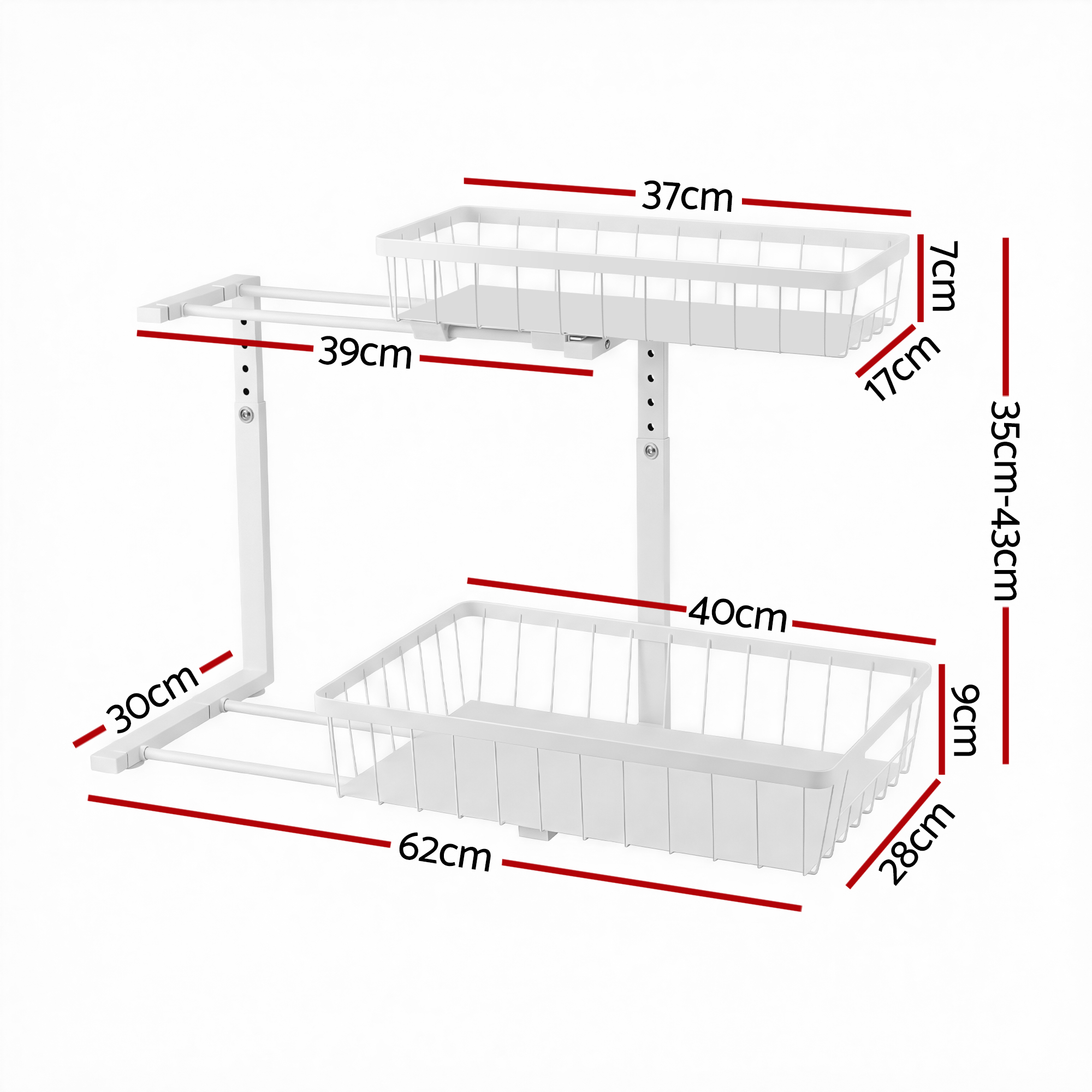 Maximise every inch of storage with the Artiss Under Sink Organizer. Its unique L-shape design neatly tucks behind pipes, transforming wasted space into a functional area. The unit features 2 handy slide-out drawers that bring items in the back within easy reach, ending the need to dig through clutter. With 5 adjustable height settings, it custom-fits under most kitchen or bathroom sink cabinets. This storage solution is perfect for organising cleaning products, soaps, and spare toiletries, turning a chaotic under-sink area into a model of order and efficiency.