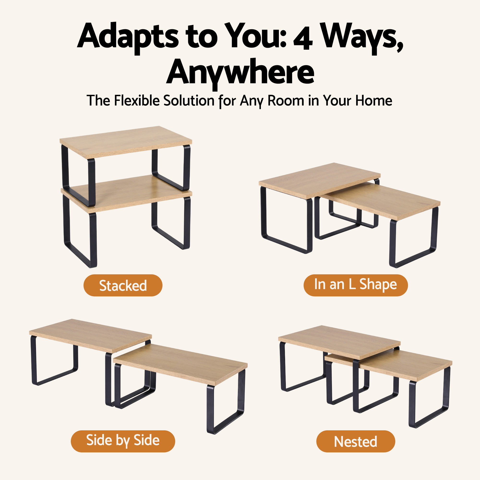 4 Different Usage Methods: Stacked/Side by Side/In an L Shape/Nested