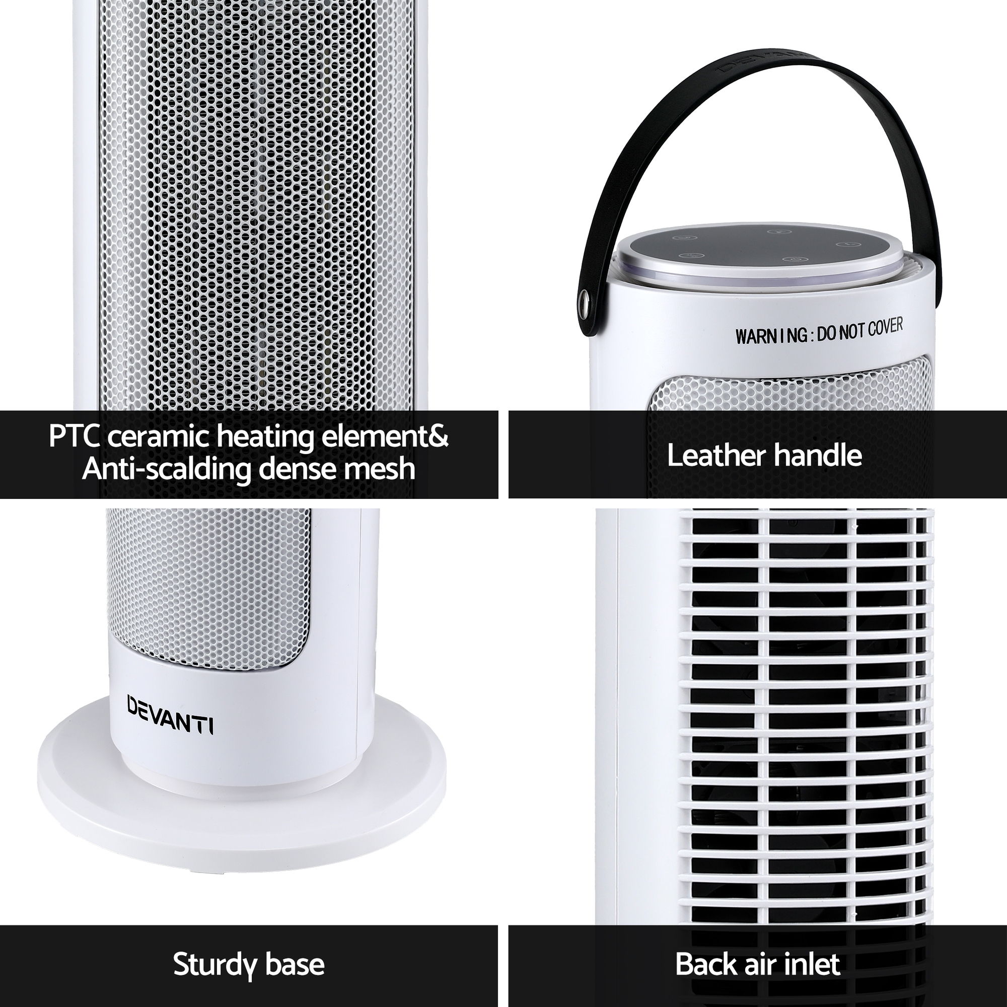 Need a little extra heating to get through winter? The Devanti Ceramic Tower Heater is here to solve your winter blues. With its high-quality rapid PTC heating system and fan system, the heater will have you warm in no time at all. It has four unique modes (fan, warm air, hot air and ECO mode) so you’re always at the perfect temperature. The ECO energy-saving mode cycles low and high heat at 24 degrees to save on energy costs. It uses wide-angle oscillation to evenly heat your space. Easily control the heater with the top touch control panel: adjust the thermostat, oscillation and heating mode at any time. Use the nine-hour timer with auto shut-off to strategically heat your home and save energy. Best of all, the heater has built-in safety features such as an anti-scald protective mesh, a safety cut-off switch in case of tipping and overheating protection. For maximum comfort and warmth through the winter months, you can’t go wrong with a Devanti Ceramic Tower Heater.