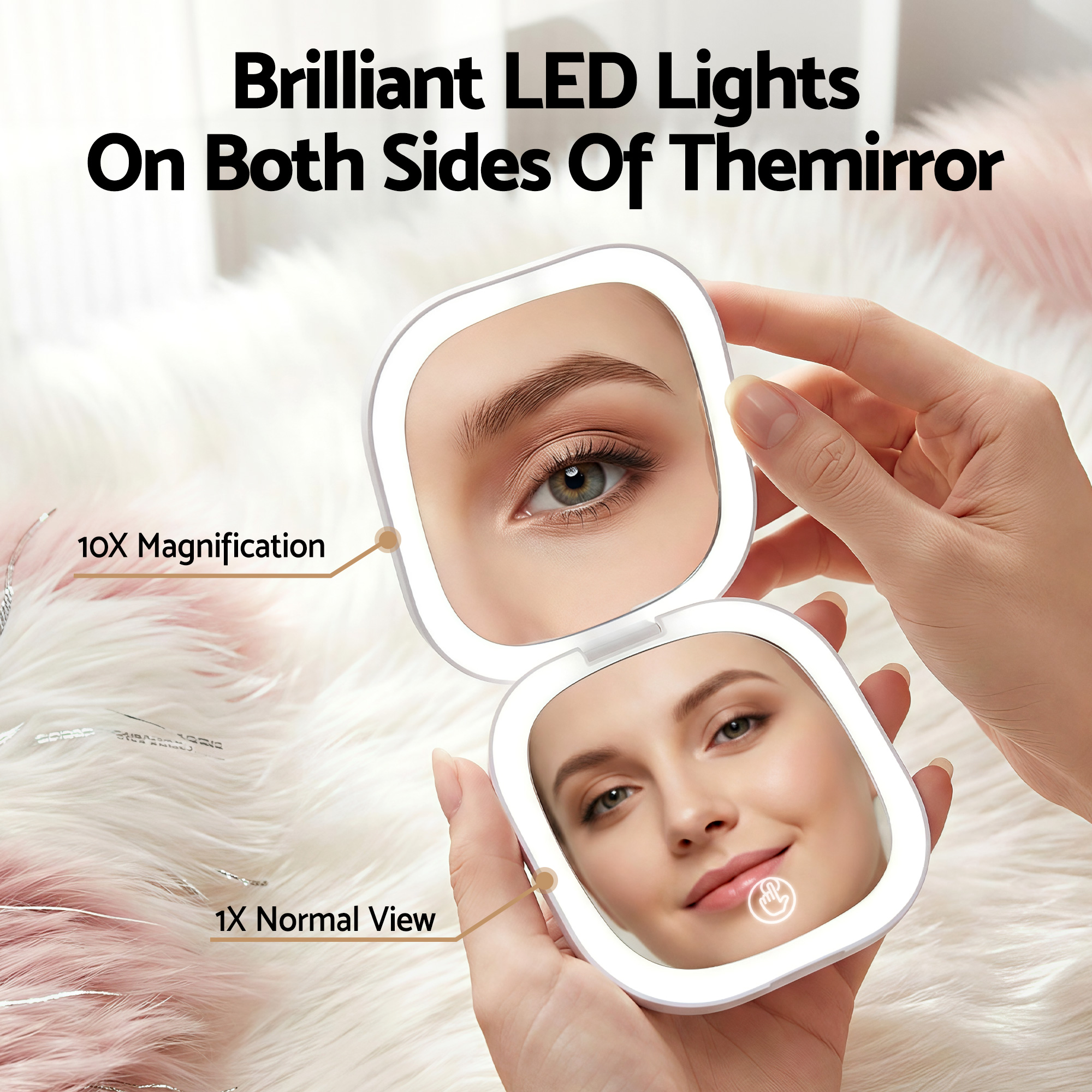 The Embellir LED Compact Mirror is your portable, professional makeup studio. Folding to just 9x9x2cm—smaller than a phone—it fits in any bag or pocket. It features dual-sided 1x and powerful 10x magnification for full-face and detailed work. With 3 colour temperatures and adjustable brightness, it simulates any lighting for perfect colour accuracy. The rechargeable battery and included USB cable offer cordless freedom. Presented in a gift box with pouch, it’s the perfect practical and stylish present.