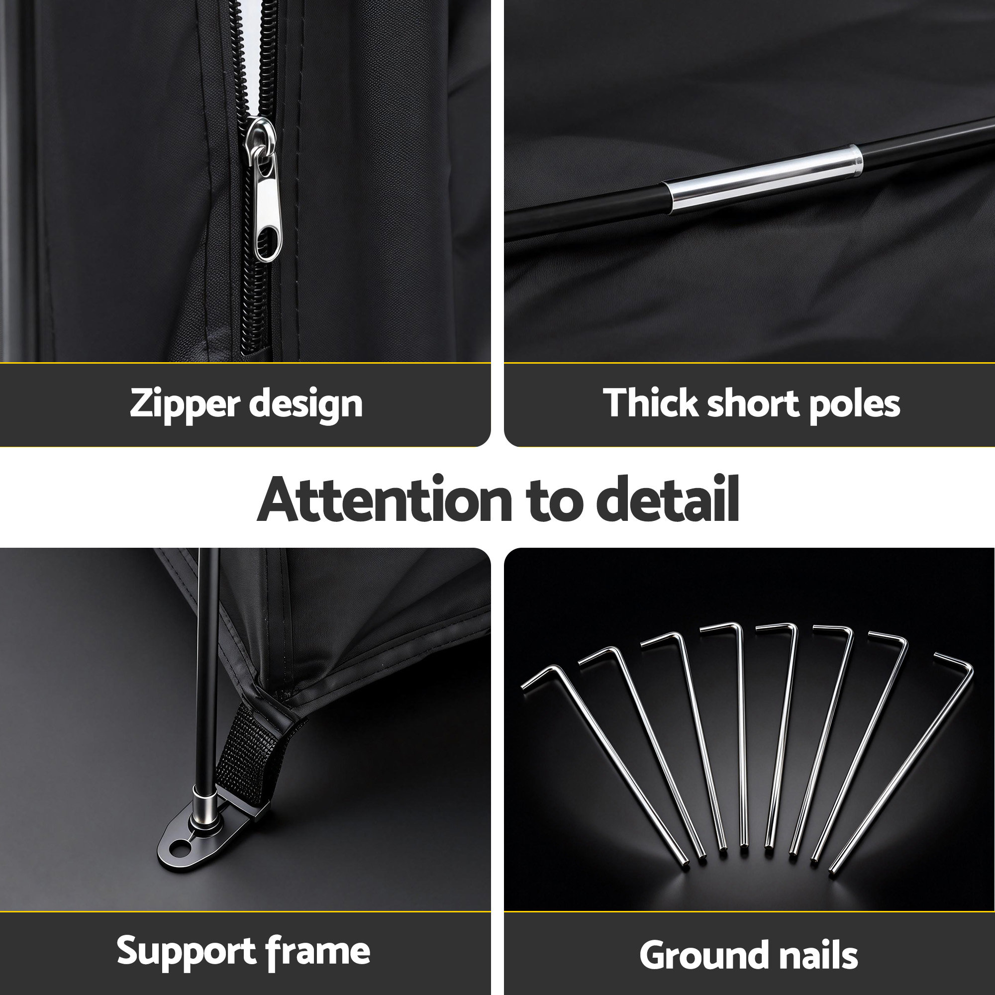 Protect your valuable bicycles and outdoor gear from the harsh Australian weather with the Giantz Bike Storage Tent. This durable and practical shelter is an essential addition to any home, providing a dedicated, secure space for your equipment.Constructed from high-quality 210D silver-coated Oxford fabric, this tent offers reliable, all-weather protection. The material is designed to be highly water resistant and provides excellent UV protection, safeguarding your bikes from sun damage and rust. The structure is supported by a strong support frame and glass fiber poles, ensuring stability and longevity, even when facing strong winds. Included ground nails provide extra security.The Giantz Bike Storage Tent features a secure zipper design for easy and quick access to your stored items. Inside, you’ll find large storage space, making it suitable for multiple bicycles, lawnmowers, or garden tools. A crucial ventilation window is integrated into the design to minimise condensation and maintain air circulation, which is vital for keeping your gear in top condition.Designed with the user in mind, this Bike Storage Tent features easy assembly with clear instructions, allowing you to set it up quickly in your backyard, carport, or shed. When not in use, the lightweight design makes it easy to carry and store, offering a flexible storage solution.