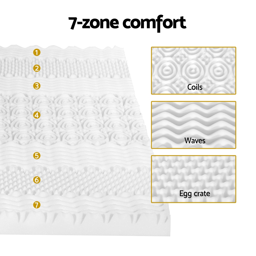Add that extra comfort to your mattress with a Giselle Bedding Pillowtop Mattress Topper. If your mattress is less comfortable than it used to be, the difference our bedding topper makes is night and day. Made from 8cm thick 100% Visco elastic memory foam, the topper is designed to be cool and comfortable. The topper has a 7-zone contoured design with over 1000 supporting points for even weight distribution, increased air circulation and motion absorption. It comes with a breathable polyester, Jacquard knitted fabric cover that is machine washable so that you can have a clean bed every time. The topper is easily foldable and comes vacuum-packed for your convenience simply unpack, roll out, and allow 24 hours for full expansion. Get your best sleep with the Giselle Bedding Pillowtop Mattress Topper. Our topper is available in single, double, queen and king sizes.