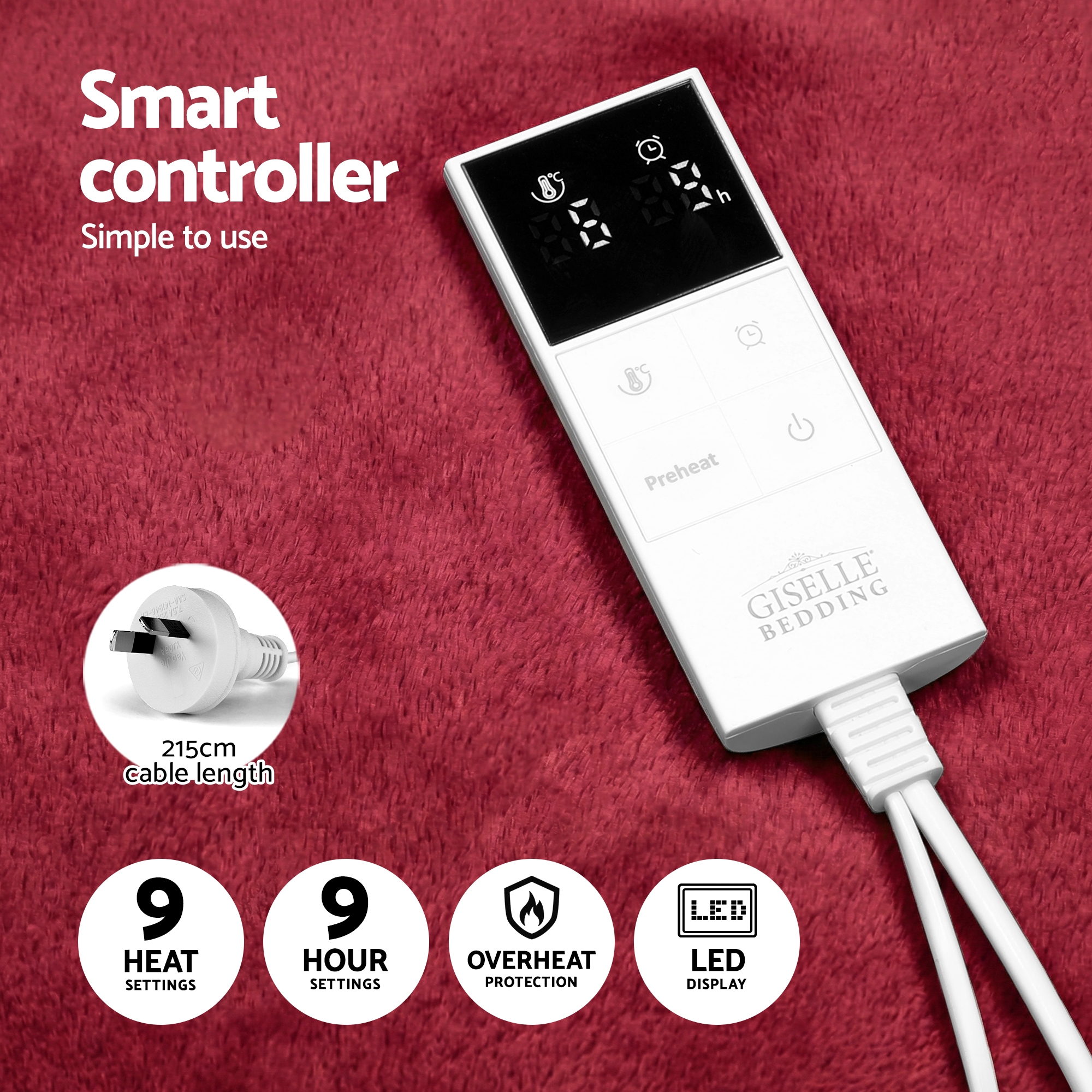 Double the comfort with the new oversized Giselle Bedding Electric Throw, designed specially for sharing. This reversible heated blanket offers two luxurious textures: velvety flannel on one side and plush sherpa fleece on the other. Perfect for chilly Aussie nights, it features 9 adjustable heat settings and a convenient 9-hour timer for personalised warmth. With a detachable controller for easy machine washing and built-in overheat protection, it is a safe, cosy essential for your sofa or bed.