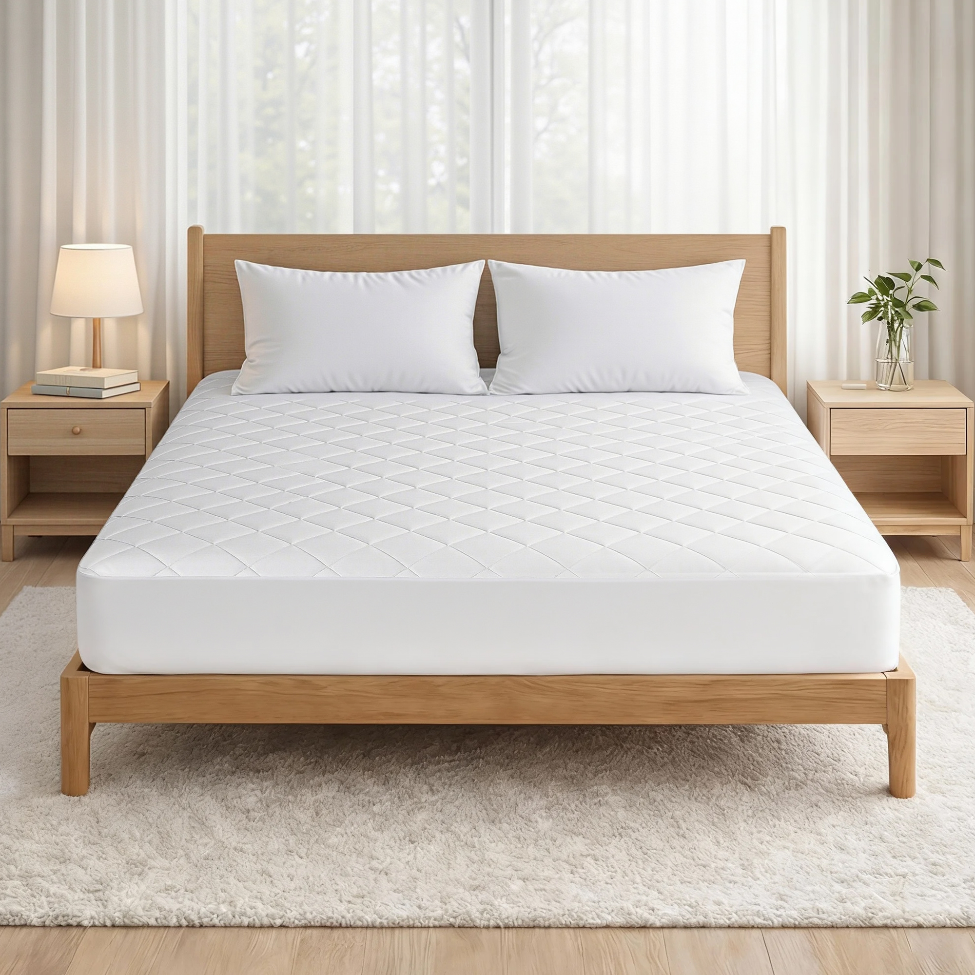Sleep in luxury and hygiene with the Giselle Bedding Cotton Mattress Protector. Featuring a 250T 100% cotton top, it offers superior breathability and a soft touch. The quilted design with 100gsm filling adds extra comfort, while the silent waterproof backing ensures your mattress stays dry and stain-free. Finished with a 35cm deep fitted skirt for a secure, non-slip fit.