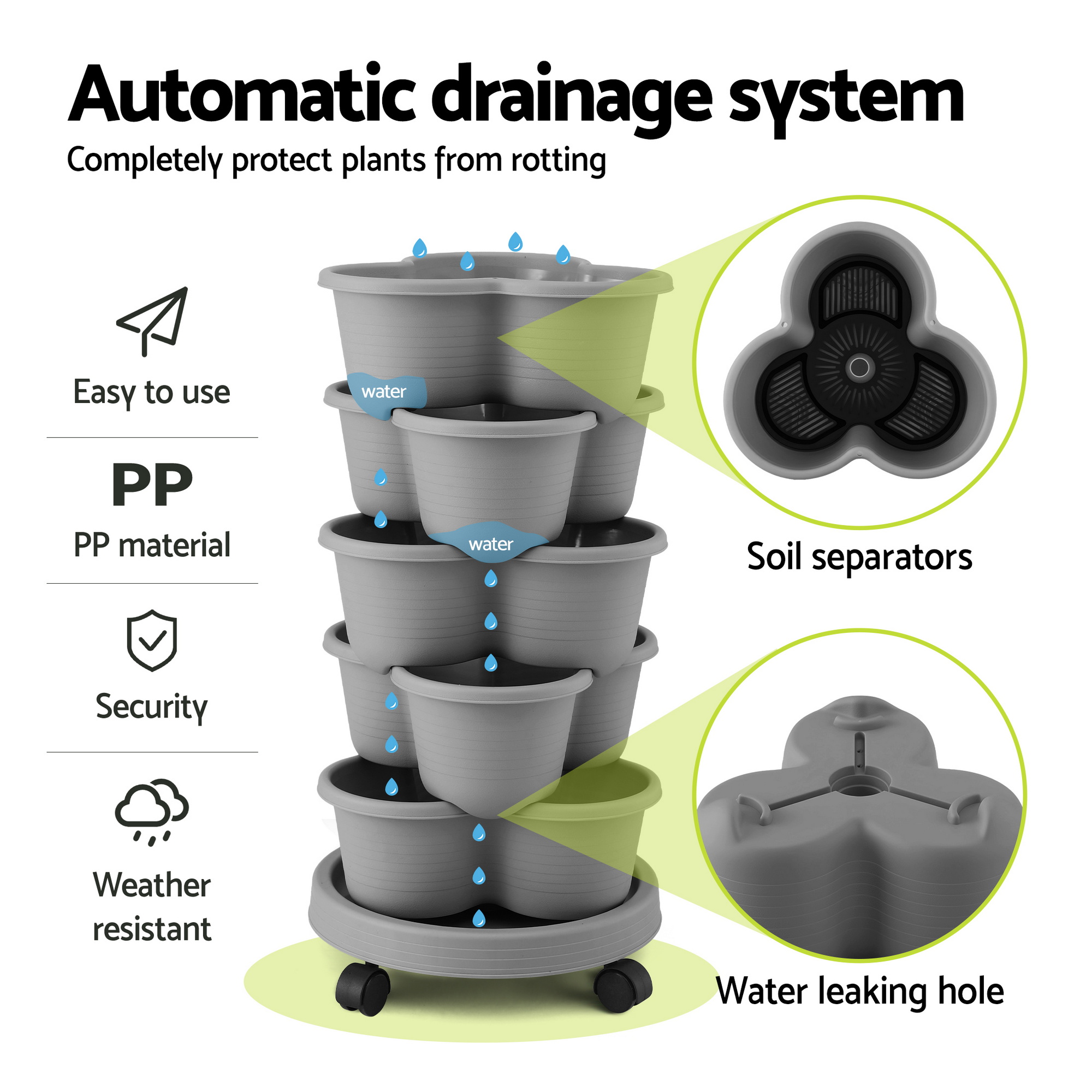 Auto-Drainage System: Prevents root rotting with soil separators.