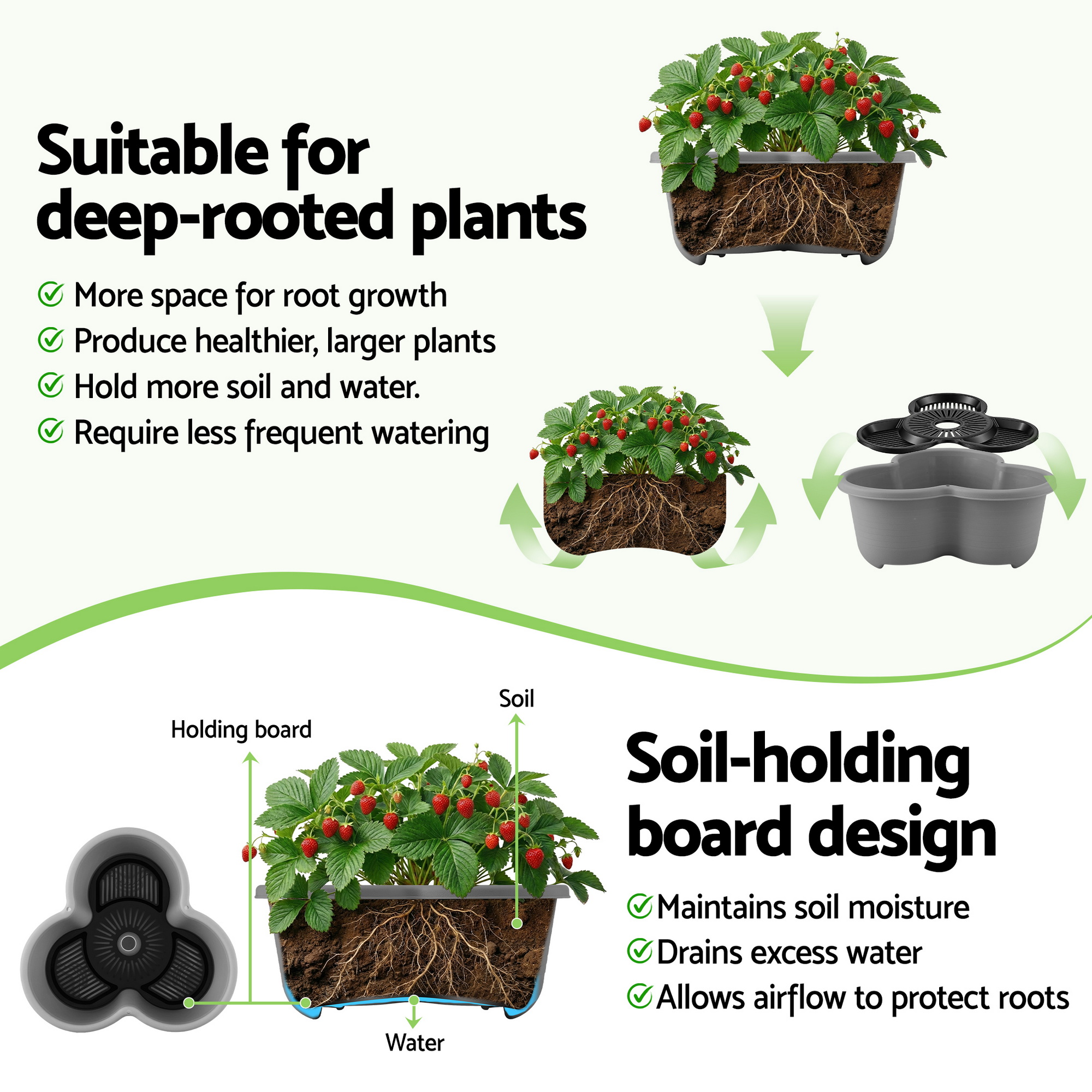 Deep-Root Support: Larger space for healthier, larger plant growth.