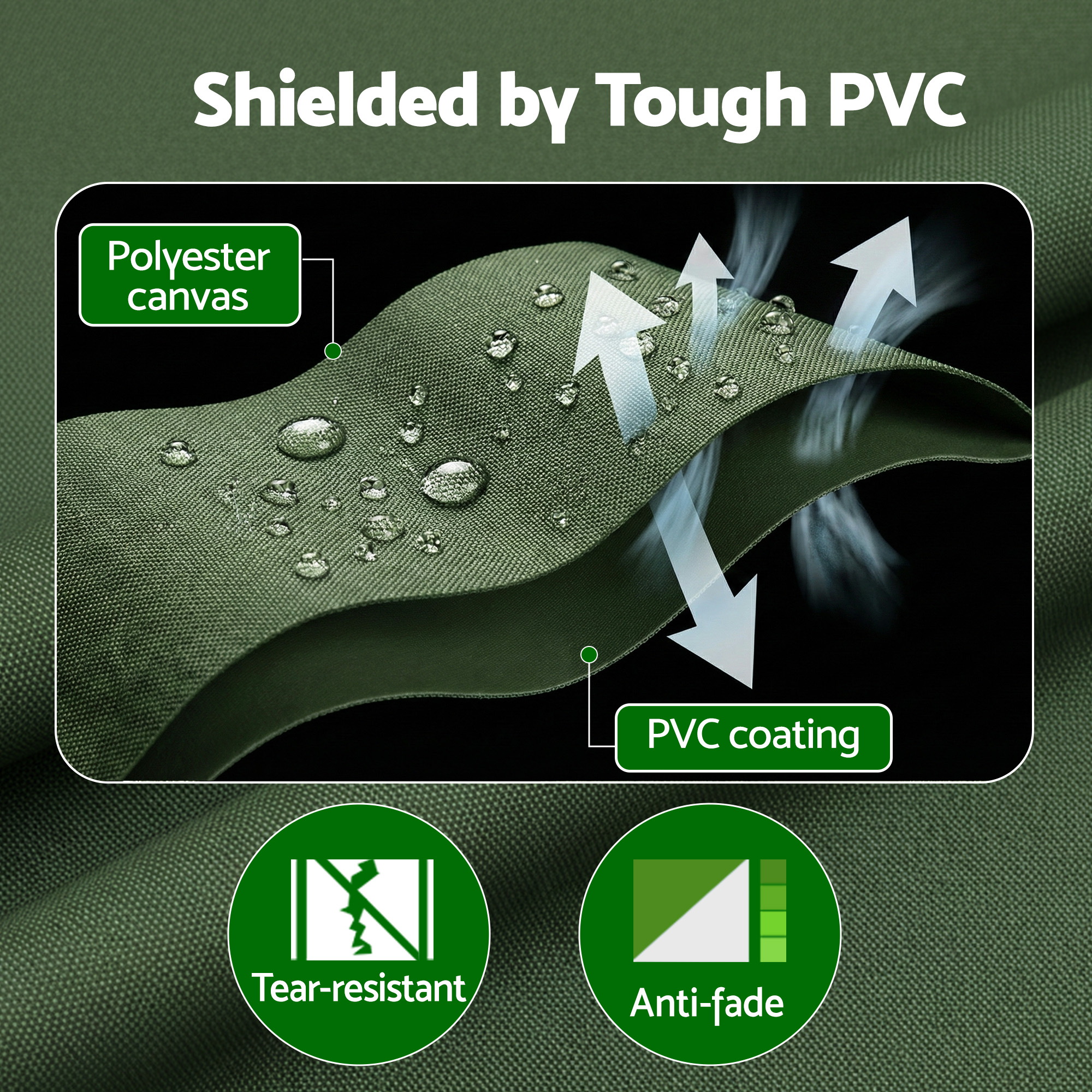 Crafted from heavy-duty 600gsm silicone-coated canvas with a thick PVC layer, this robust tarp is built to last. The solid 0.5mm thick green material is not only visibly tough but also fully waterproof, UV-resistant, and anti-fade, standing up to extreme heat and deep cold without failing. Reinforced edges and corners, along with heavy-duty steel eyelets, ensure secure and hassle-free tie-downs. Come wind, rain, or harsh sun, this tarp delivers unwavering performance.
