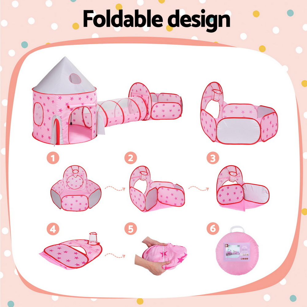 Give your children the gift of creativity and imagination with the Keezi 3-in-1 Kids Playhouse! This amazing playhouse comes with a wide variety of activities to keep your children occupied, but it is also designed with convenience in mind. It features a foldable design that fits neatly into the included carry bag, making it easy to set up and store away. Made from durable polyester fabric, the playhouse is designed to last long hours of play both indoors and outdoors. It features a ball pit with a fun basketball hoop, a fun crawl tunnel and a fun-shaped hideout with a breathable mesh window and roller shutter. Easy to store, clean and maintain, you and your kids will love the convenience and flexibility of the Keezi 3-in-1 Kids Playhouse!