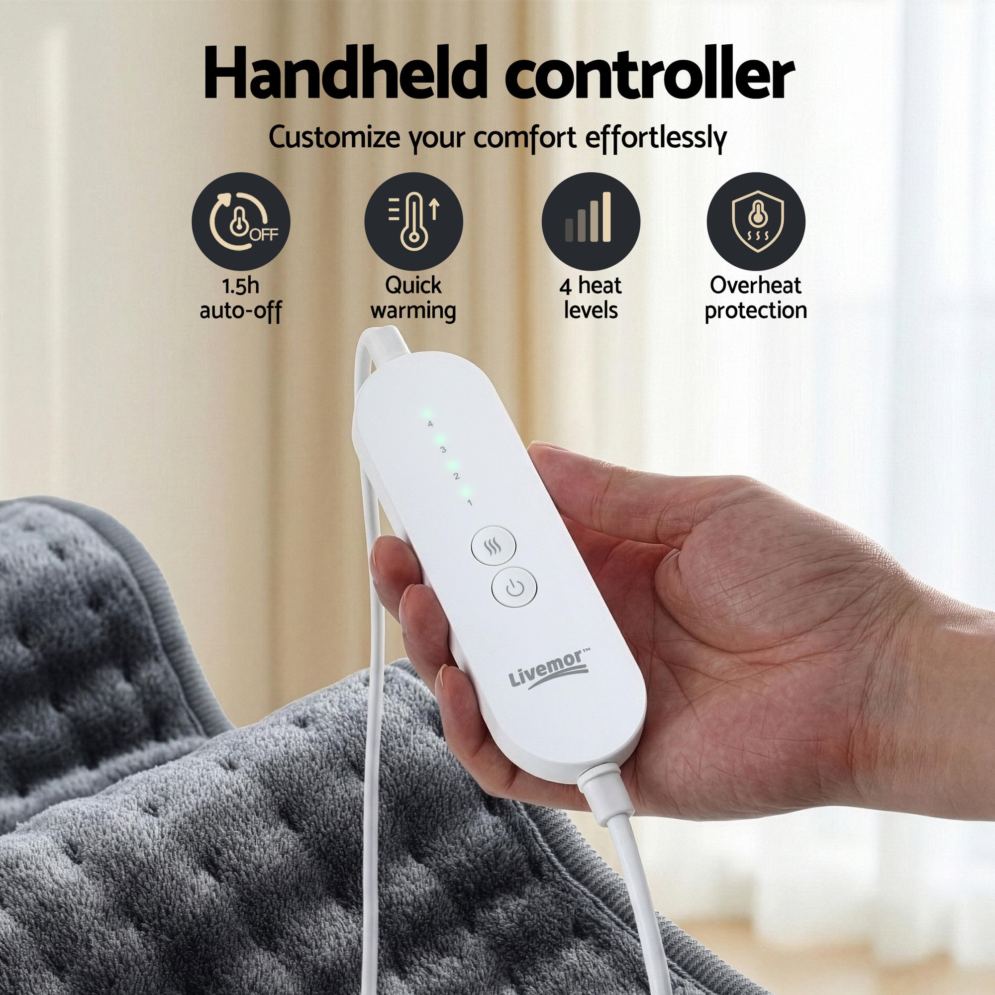 Elevate your relaxation routine with our Livemor Electric Heat Mat. Designed for those who appreciate cozy warmth, this versatile pad is the perfect companion for chilly evenings or simply unwinding after a long day. Whether you’re lounging on the sofa or resting in bed, our 60x39cm pad offers ample coverage. Use it to warm your back, drape it over your shoulders, or snuggle up with it on your lap. With 4 adjustable settings, you can go from a gentle simmer to a deep, cozy warmth at the touch of a button. The pad is programmed with a 90-minute automatic switch-off and overheat protection, ensuring it stays within a comfortable range and saves energy while you rest. Made from high-quality, skin-friendly microfiber, this pad isn’t just functional—it’s incredibly soft. It’s designed to be lightweight and flexible, contouring to your body for maximum snugness. Keep your heat pad looking and feeling like new. The detachable controller allows for easy machine washing, ensuring your comfort is always hygienic.