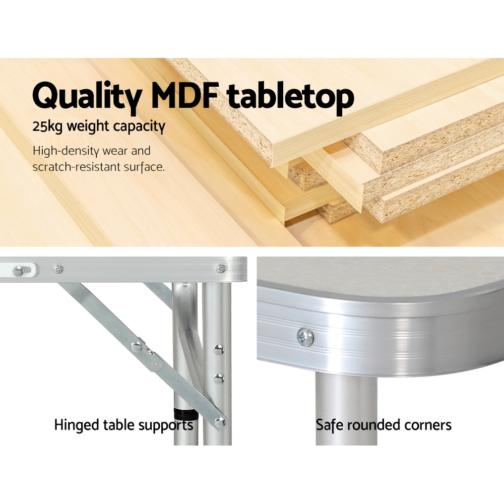 Made of strong aluminium throughout, the Camping Table can handle up to 25kg in weight with its rust-resistant MDF table top. The table height can also be easily adjusted for high-leg use as a dining table or short-leg use when sitting on the floor or placed next to your sleep area. Not least, the rounded corners ensure the Camping Table is safe to use around kids and adults at all times.