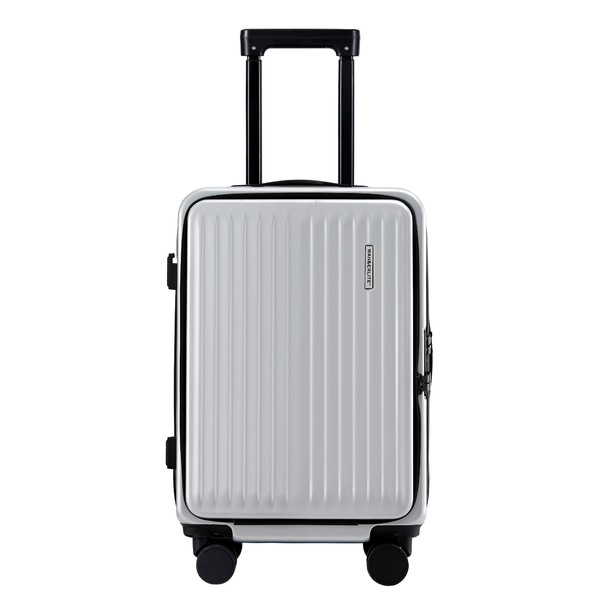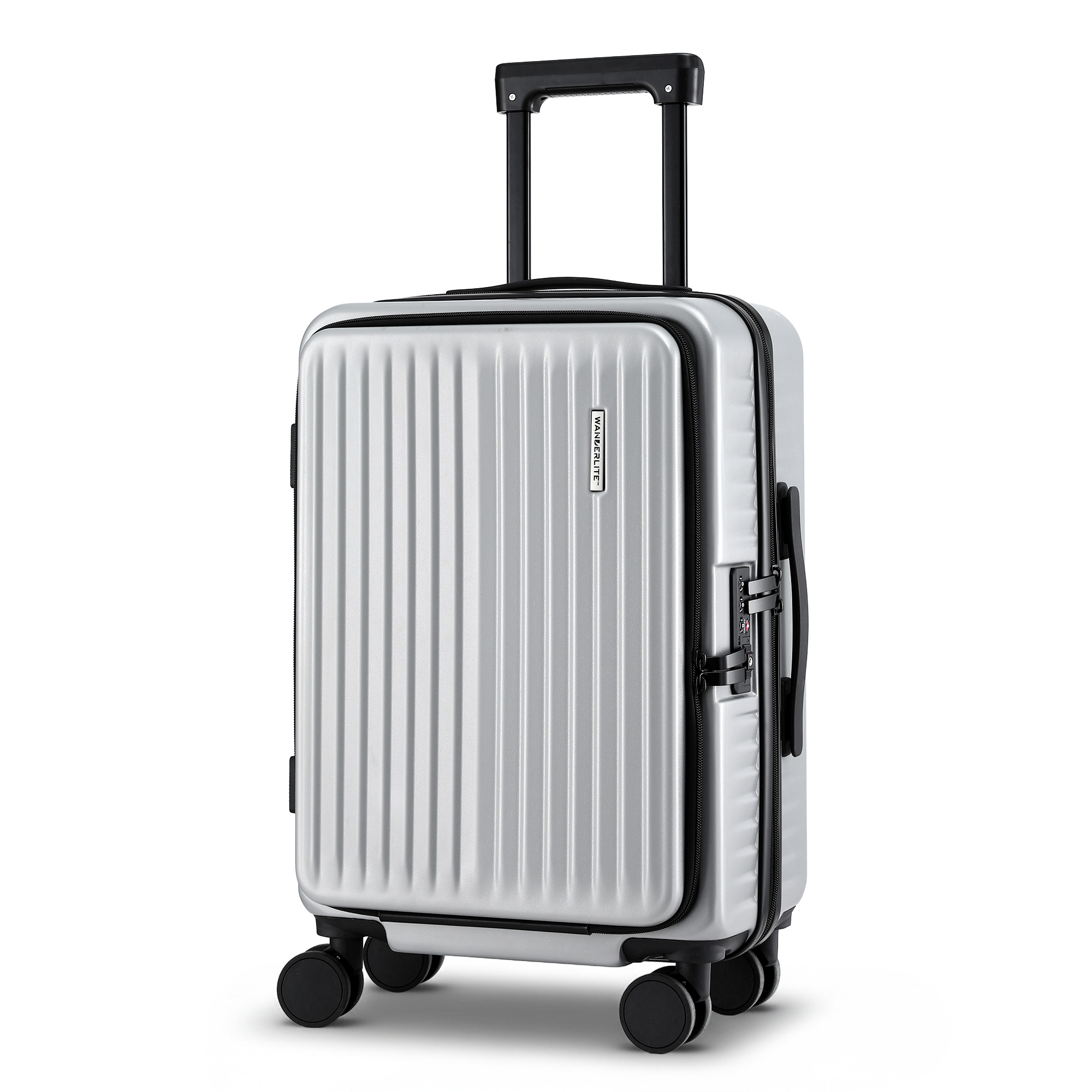 Travel in style and convenience with Wanderlite 20″ carry-on front pocket luggage featuring a quick-access front pocket for your phone and travel essentials, plus a padded laptop compartment that fits up to 15.6″ devices.